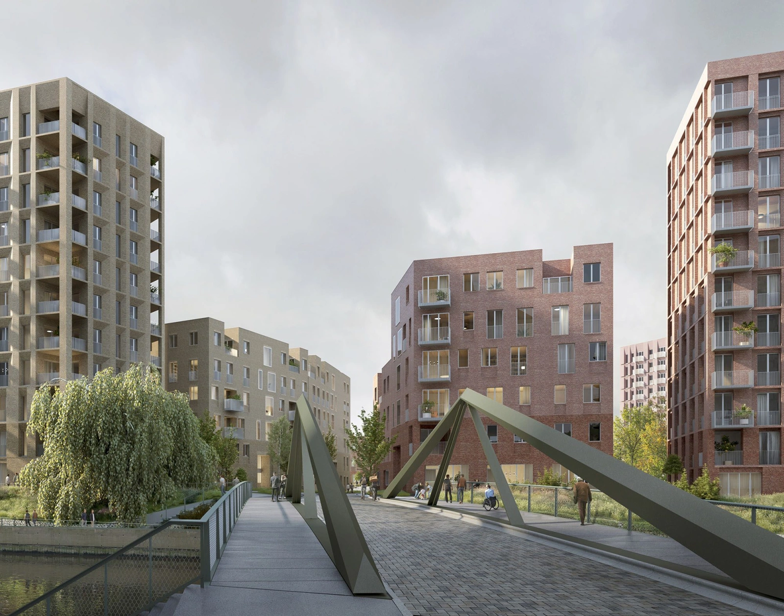 The bridge provides primary access to the Bridgewater Triangle housing development, a mixed-tenure residential scheme of approximately 600 new homes, master-planned by Mikhail Riches. As such, the bridge was a critical item of enabling infrastructure, required to accommodate vehicles, cyclists, and pedestrians, while also facilitating the re-opening of the towpath beneath the structure.